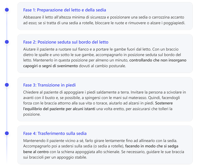 b) Trasferimento dal letto alla posizione seduta e in piedi